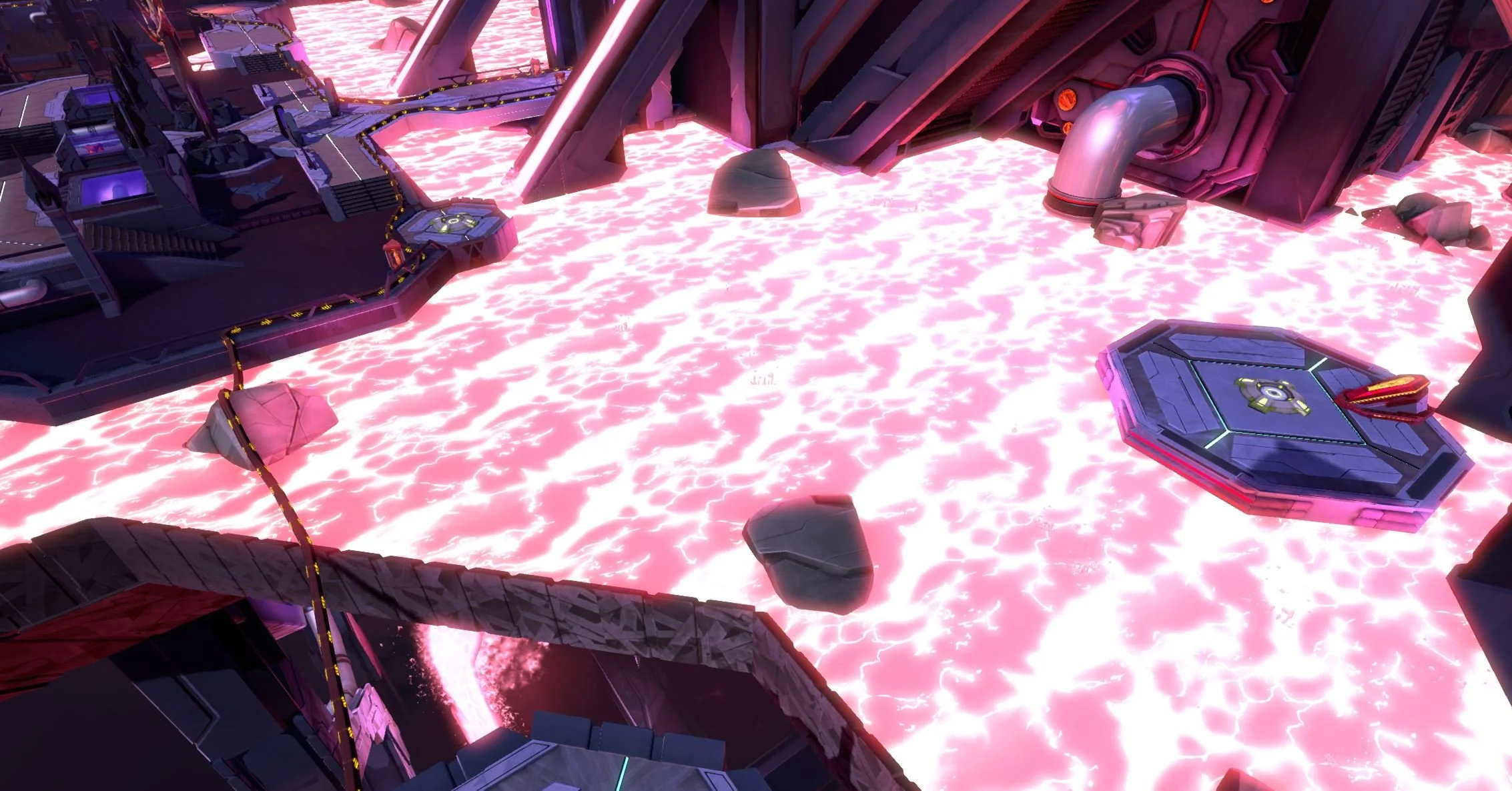 Each segment of the complex was housed on it’s own island connected by a series of jump pads that would launch players from location to location. Upon arrival players would be greeted with waves of defending enemies.