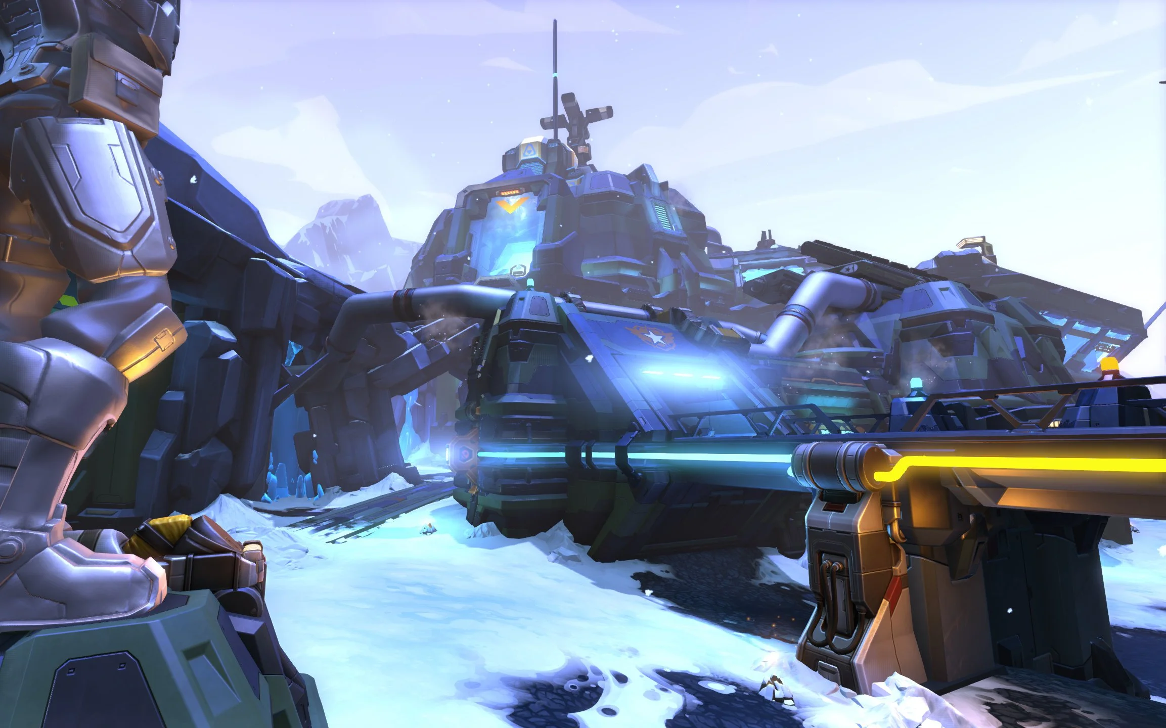 I decided to lean into the idea that the cold side faction had been digging for ancient fossils. Adding the huge dragon head frozen in a solid block of ice, helped give this area a strong identity. I added pipes connecting the glowing red eye of the dragon to the capture point to sell the idea that it was drawing on some sort of ancient power source.