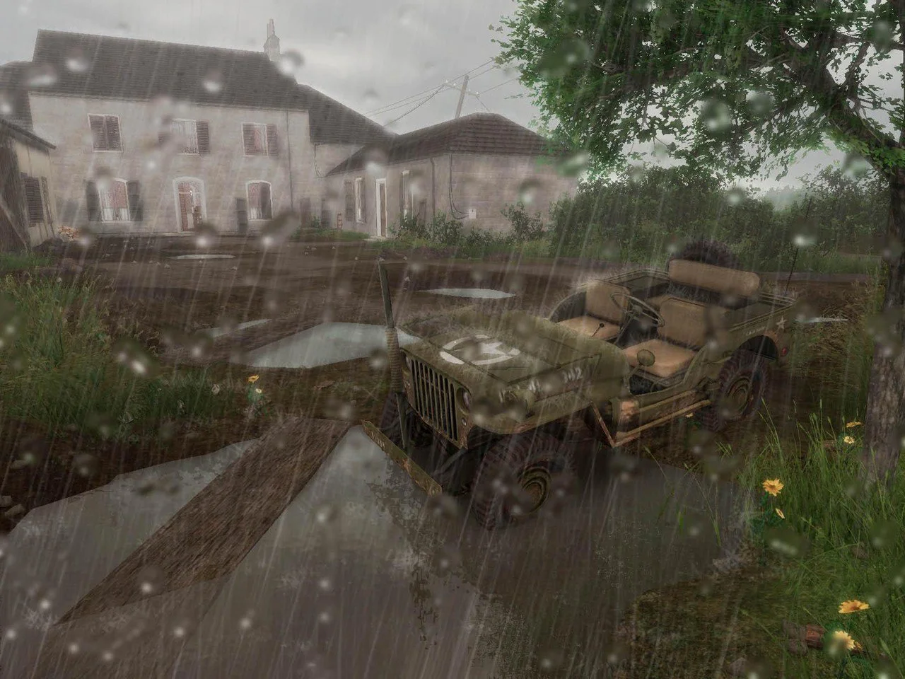 Many hands played a part in the opening scene at Hill 30. I contributed scripting, rain effects, postprocessing, explosions, tracer fire, muzzle flashes, and the main “dugout” meshes that define the trench line. As well I created most of the foliage seen throughout the game.